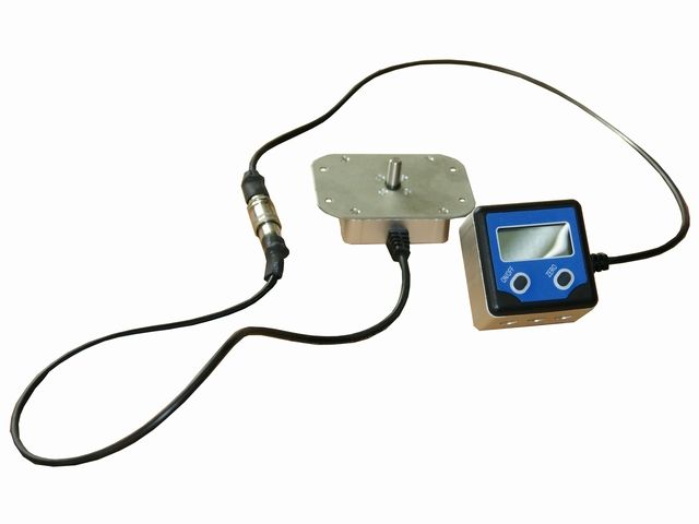 Digitaler Gradmesser mit externem Sensor mit dem der Messwert über eine ca. 6 mm abgeflachte Welle abgenommen wird. Die Welle ist links wie rechts unendlich drehbar. Die maximale Umdrehung beträgt 600 Upm. Der Neigungsmesser hat einen Messbereich +/-180°, mit Sensor +/-360°, bei einer Wiederholbarkeit von 0,1°. Der Drehgeber ist HxBxT(mm) 51x51x33mm und ist mit einer Magnetsohle ausgestattet. Die Bedienung wird über 2 Funktionstasten On/Off und Nullstellung vorgenommen. Die Genauigkeit des Neigungsmessers liegt von 0°-10° bei +/- 0,1°, von 10°-170° bei +/-0,2° und von 170°-180° bei +/-0,1°. Das Verbindungskabel für Gradmesser und Sensor ist 1 m lang. Die Stromversorgung leistet eine 3V Batterie. Eine längere Lebensdauer der Batterie wird durch eine automatische Abschaltung des Gerätes erreicht.