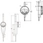 Hier erhalten Sie eine digitale Präzisions Messuhr mit drehbarer Digitalanzeige. Die Messuhr steht Ihnen in 4 verschiedenen Messbereichen zur Auswahl. Die Messtaster haben jeweils eine Ablesung von 0,001mm. Die Anzeige ist von 0-310° drehbar. Die 5 Funktionstasten sind im Halbkreis am unteren Gehäuserand angeordnet. Sie bestehen aus mm/inch-, TOL-,M-, ABS-, Null- und Ein/Aus-Taste. Zur Ausstattung unserer Qualität Messuhr gehören außerdem ein Datenausgang RB 5 und und eine Aufnahme 8 h6. Zum Lieferumfang zählen Ersatz-Batterie, Beschreibung und Behältnis/Kasten. Die einzelnen Messbereiche und Maße der Messuhren entnehmen Sie bitte aus der unten aufgeführten Übersicht ( und siehe Skizze).